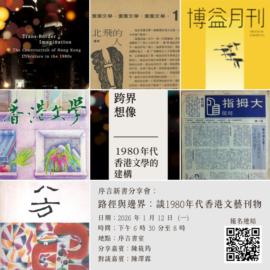是次分享會,作者將與各位讀者討論書中專研的五種刊物,包括《八方》、《香港文學》、《素葉文學》、《大拇指》和《博益月刊》,介紹香港當時如何以文學及出版的方式面對自身與世界、不同刊物在嘗試摸索和為各自定位的同時,涉及文學邊界的想像,並折射出文化中國的理想與追尋、香港文學和中國現代文學的對話關係、香港與各地華文文學的連結,以及各式文類和媒介的跨越。