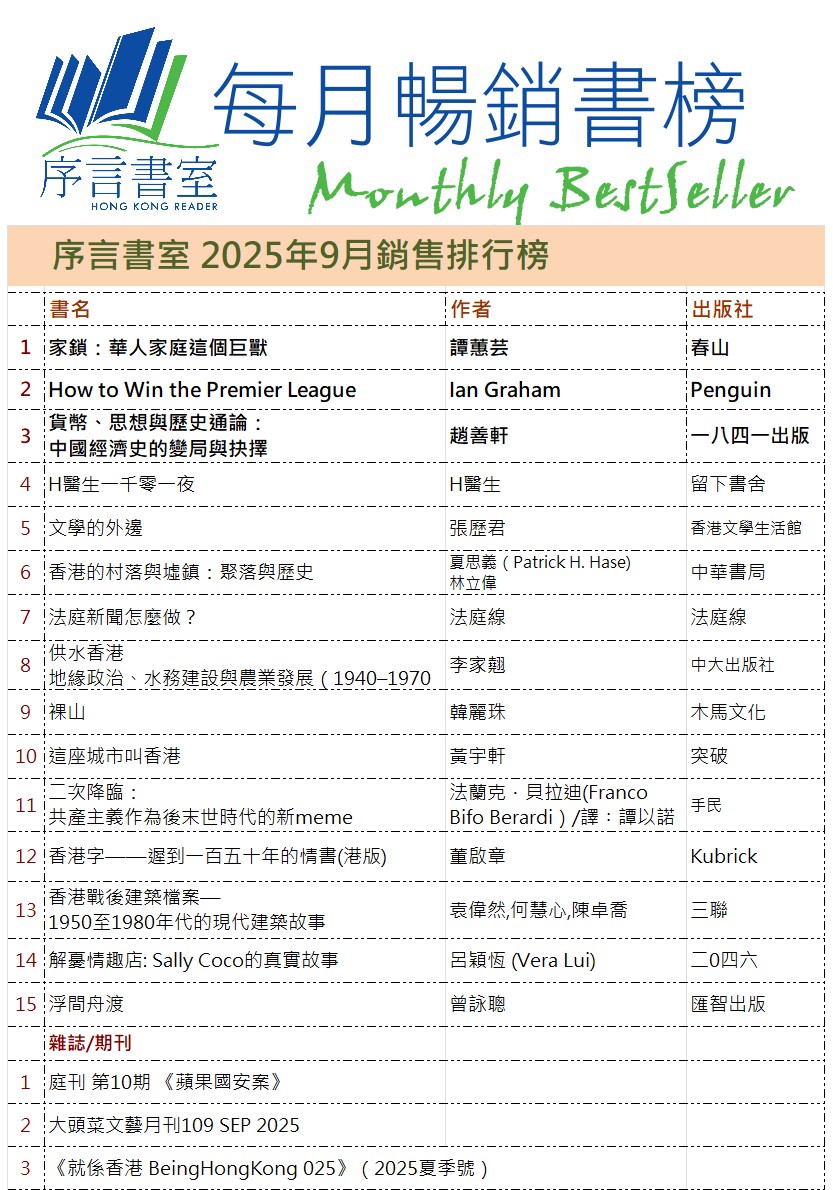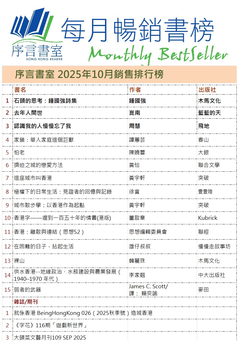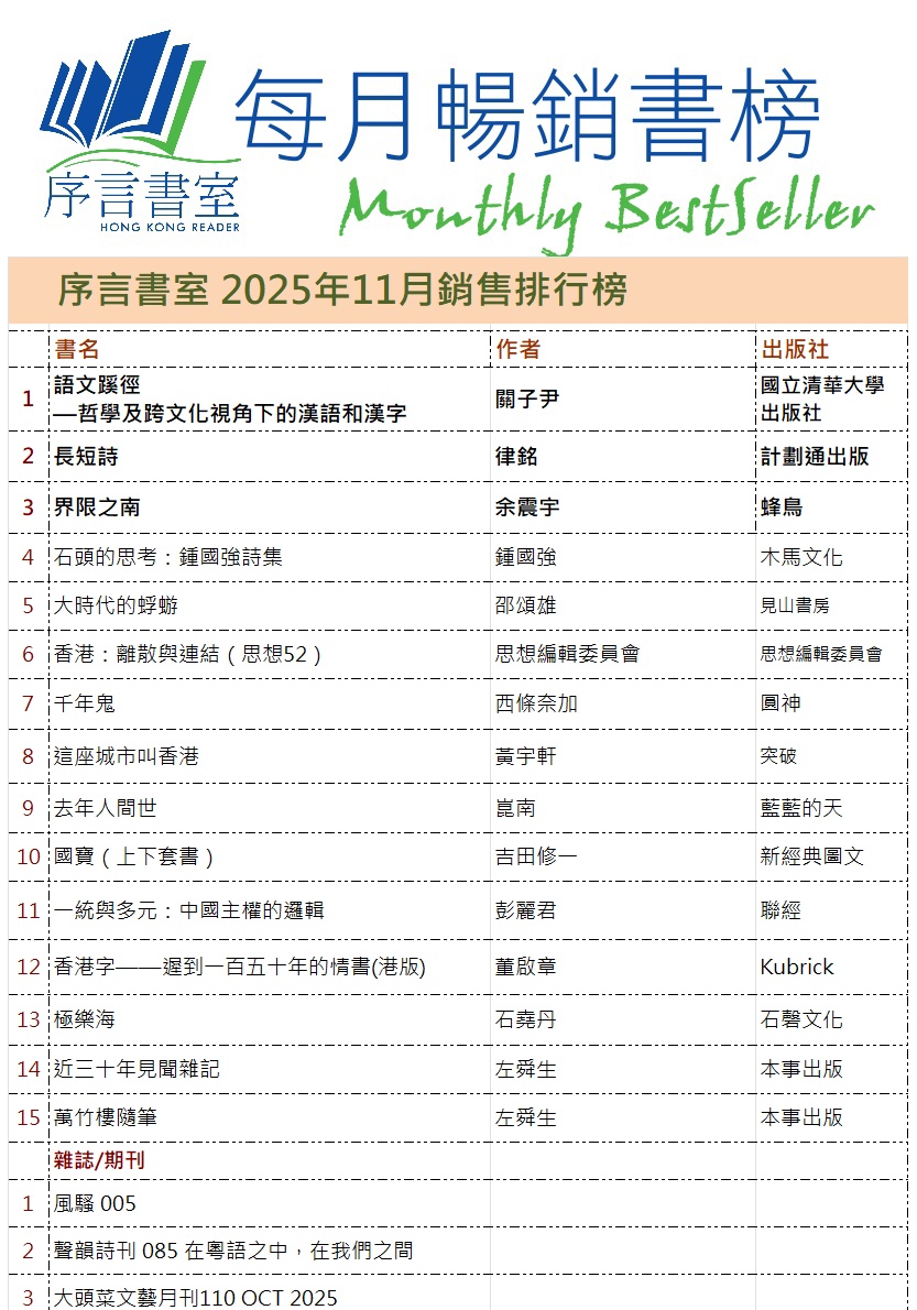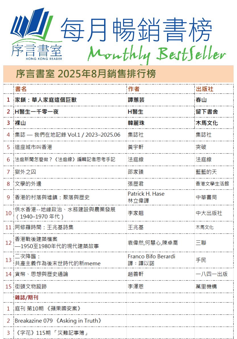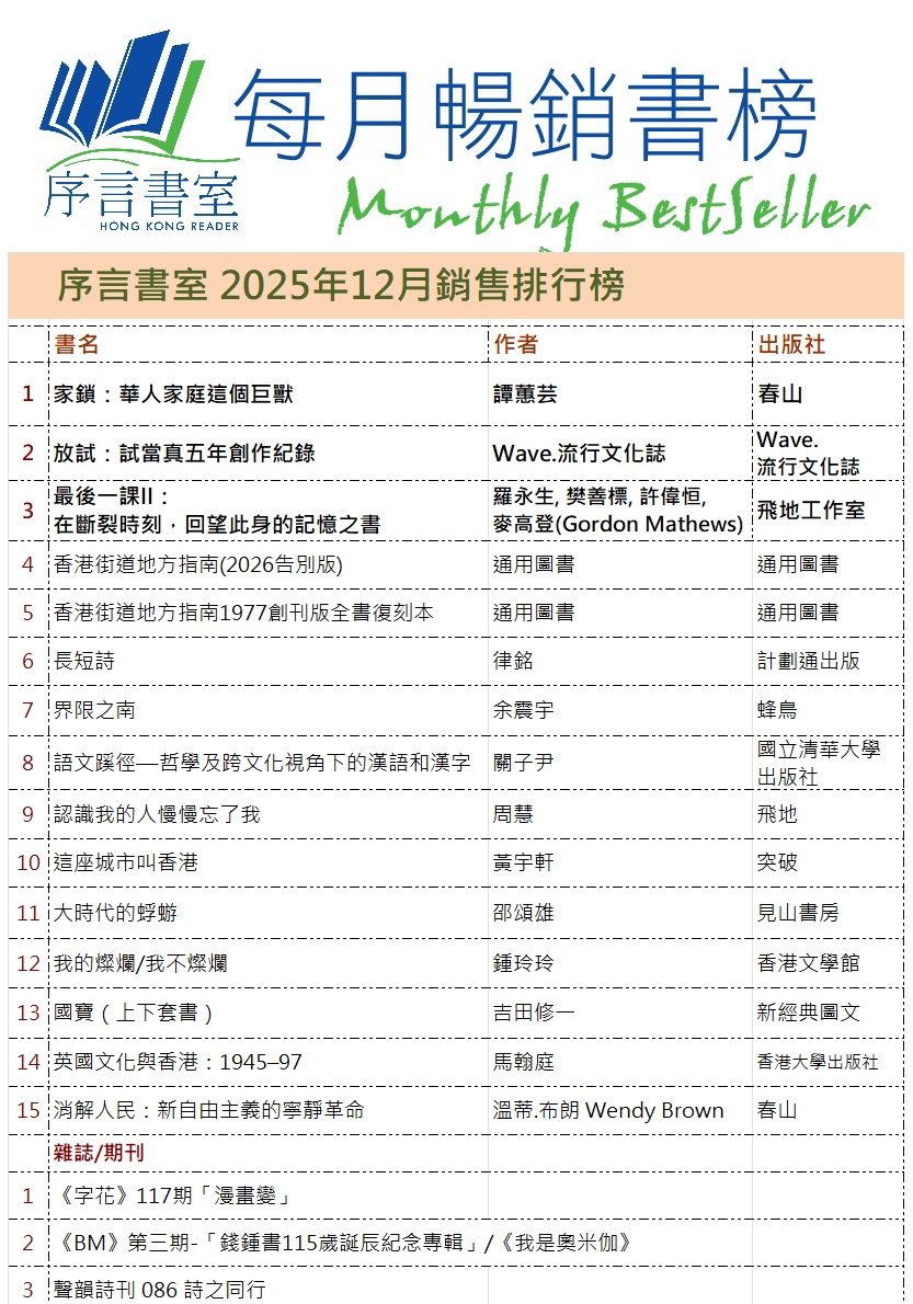 地址︰旺角西洋菜南街68號7字樓 (旺角地鐵站D3/E2出口,GU大電視對面,上兩層有電梯) Address:7F, 68 Sai Yeung Choi Street South, Mong Kok(MTR Exit D3/E2) 地圖MAP 電話/Tel/WhatsApp/Signal︰2395 0031 電郵/email︰info@hkreaders.com 營業時間︰中午12時至晚上10時 Opening Hours: 12pm-10pm Follow序言Facebook Follow序言Instagram 加入序言Facebook Group Like店長未未